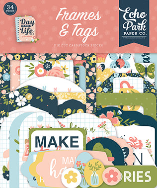 From Echo Park's Day In The Life No. 2 collection, one package with 33 cardstock frames and tags. Perfect for scrapbooking, journaling, planners, cards, and so much more – this beautiful collection is filled with everything you need to tell your story. Cards, tags, tabs, stickers, beautiful images, and motivational words, all printed in a beautiful color range will inspire you to create. Make the plans, save the memories, live for the moments you can’t put into words – and let us help you along your journey!