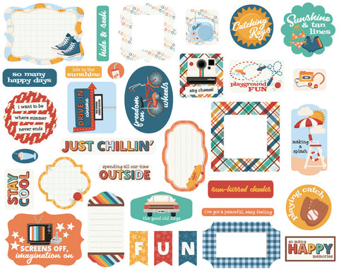 This Ephemera pack includes 34 individually die cut cardstock pieces that feature elements and designs that coordinate with the Echo Park Summer Break collection. Made in the USA.