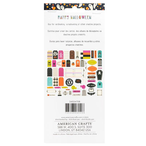 From American Crafts' Happy Halloween collection, one package with 60 cardstock journaling die cut embellishments.