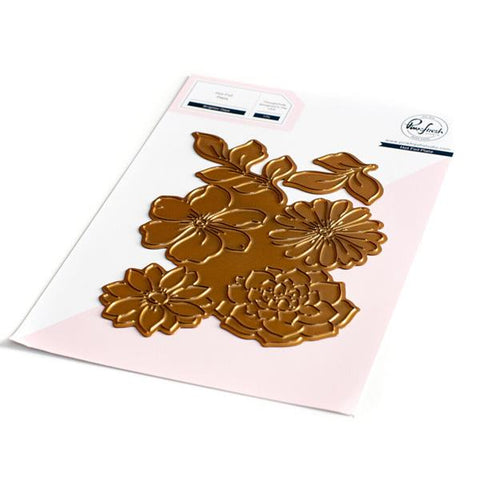 1 piece hot foil plate to coordinate with the Brighter Days layering stencil set and Brighter Days die. There is also a matching Brighter Days stamp set. Create a stunning, letterpress feel to all your projects with a Pinkfresh feel using our beautiful hot foil plates! Designed to work in any standard hot foil system, be sure to follow the instructions in your manual for a standard hot foil plate. Once foiled, the leaves and flowers are perfect for all types of coloring; including watercolor, alcohol & brush markers, colored pencils and no-line coloring. Combine with the coordinating Brighter Days layering stencil set to ink blend the images with all 48 shades of our premium dye inks. Use the coordinating Brighter Days die to cut out all the images in one easy pass through your diecut machine. Approximate Measurements: 3 ¾” x 5 ¼”