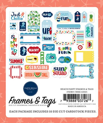 From Carta Bella's Beach Party collection, one package with 33 cardstock frames and tags.