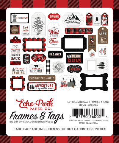 From Echo Park's Let's Lumberjack collection, one package with 33 cardstock frames and tags.