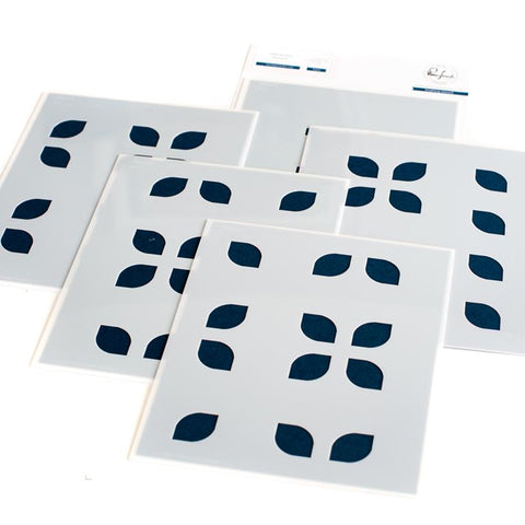 5 piece layering stencil set made to coordinate with the Overlapping Geo Leaf hot foil plate and Overlapping Geo Leaf die. Stencil design measures approximately 4 ¼” x 5 ½”